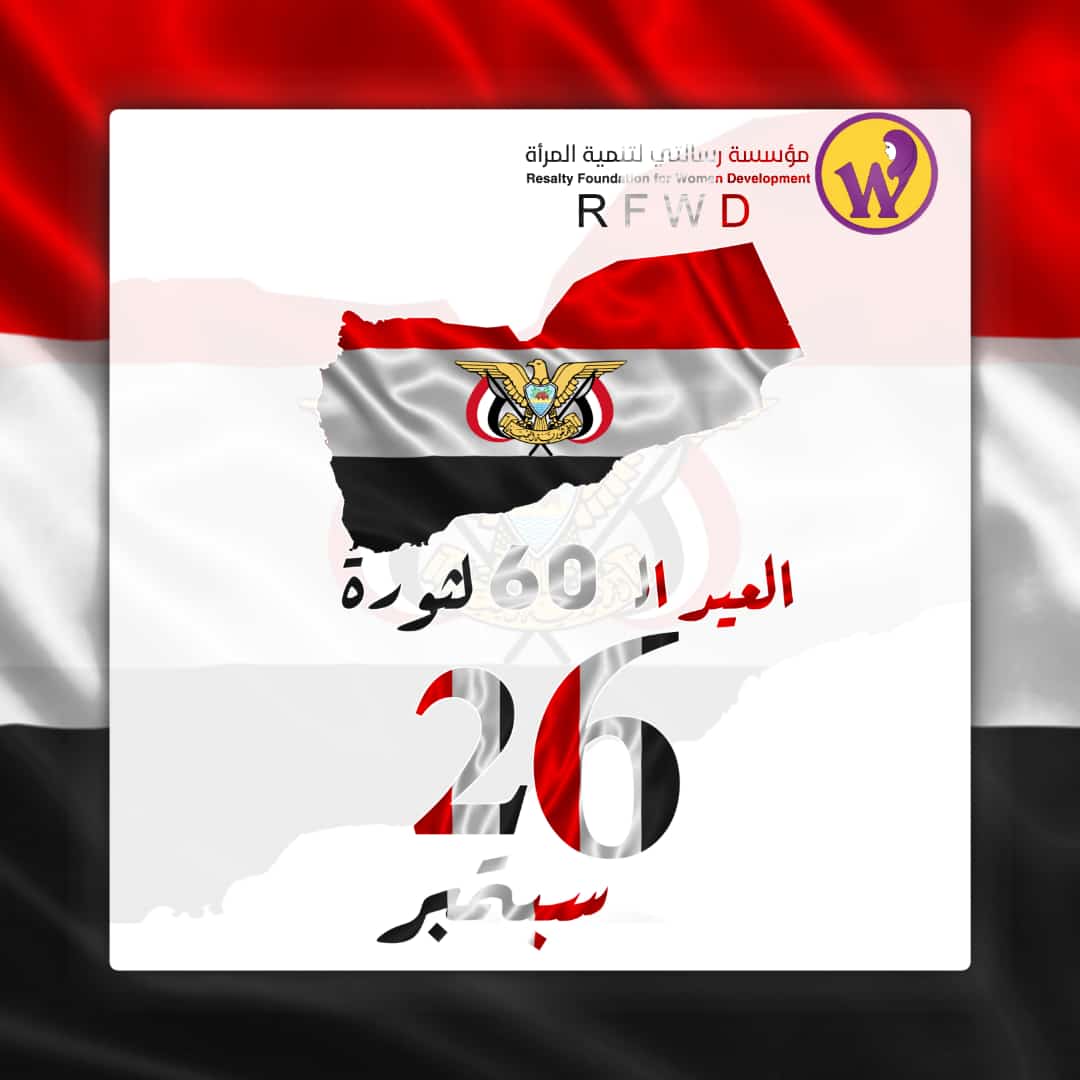 تتقدم مؤسسة رسالتي لتنمية المرأة بتهنئتكم بمناسبة الذكرى ال 60 من ثورة 26 سبتمبر. وكل عام وأنتم واليمن في أمن وآمان وإستقرار