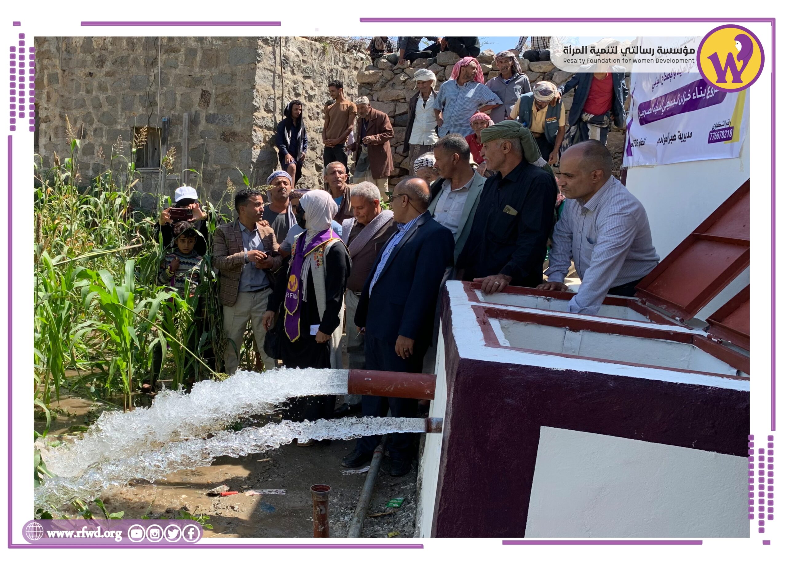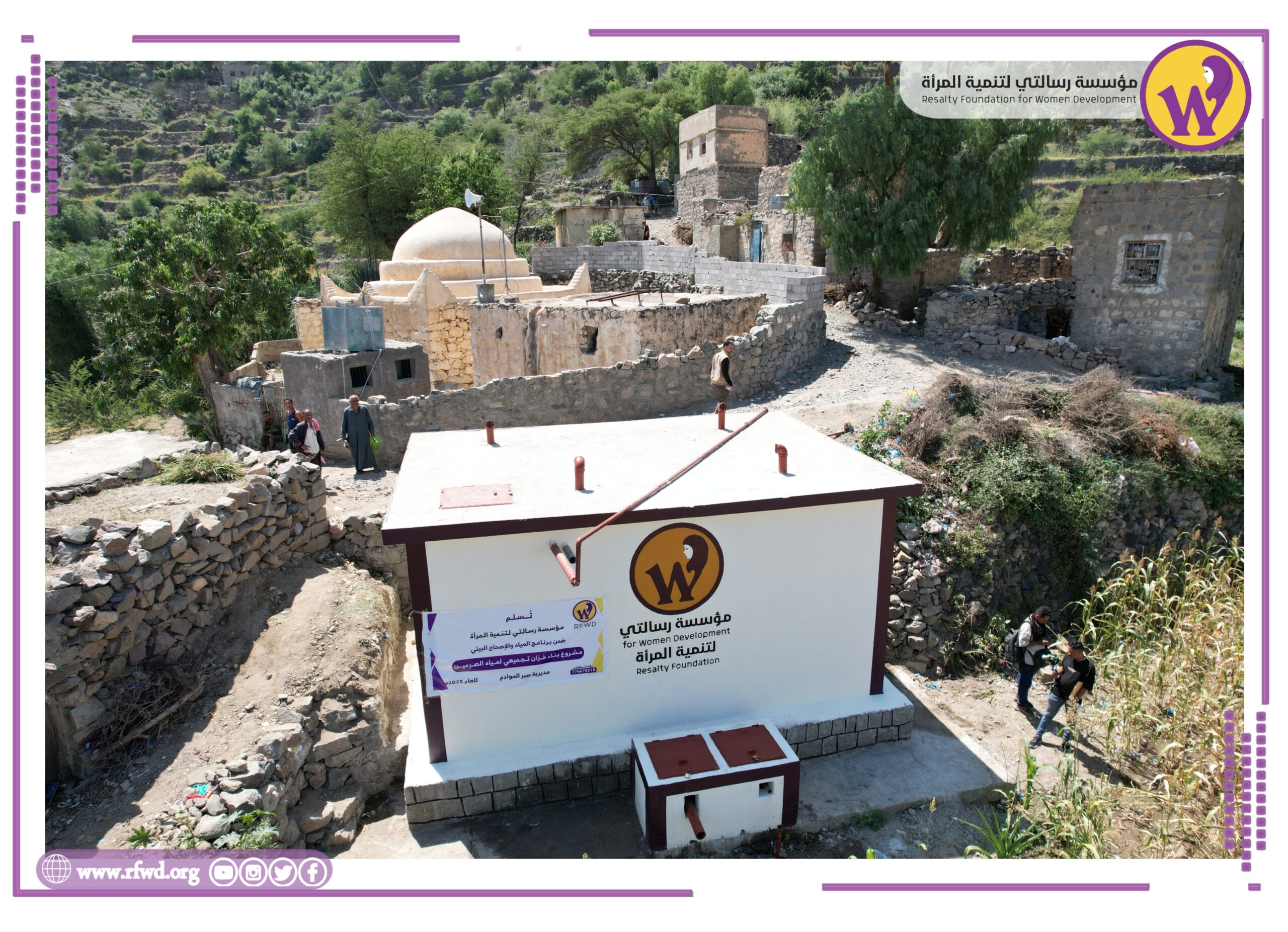 سلمت مؤسسة رسالتي لتنمية المرأة صباح اليوم مشروع بناء خزان تجميعي لمياه الصرمين في مديرية صبر الموادم بمحافظة تعز، كـ صدقة جارية لروح المرحوم فؤاد عبد الله ثابت وزعران محمد علي– رحمهما الله.