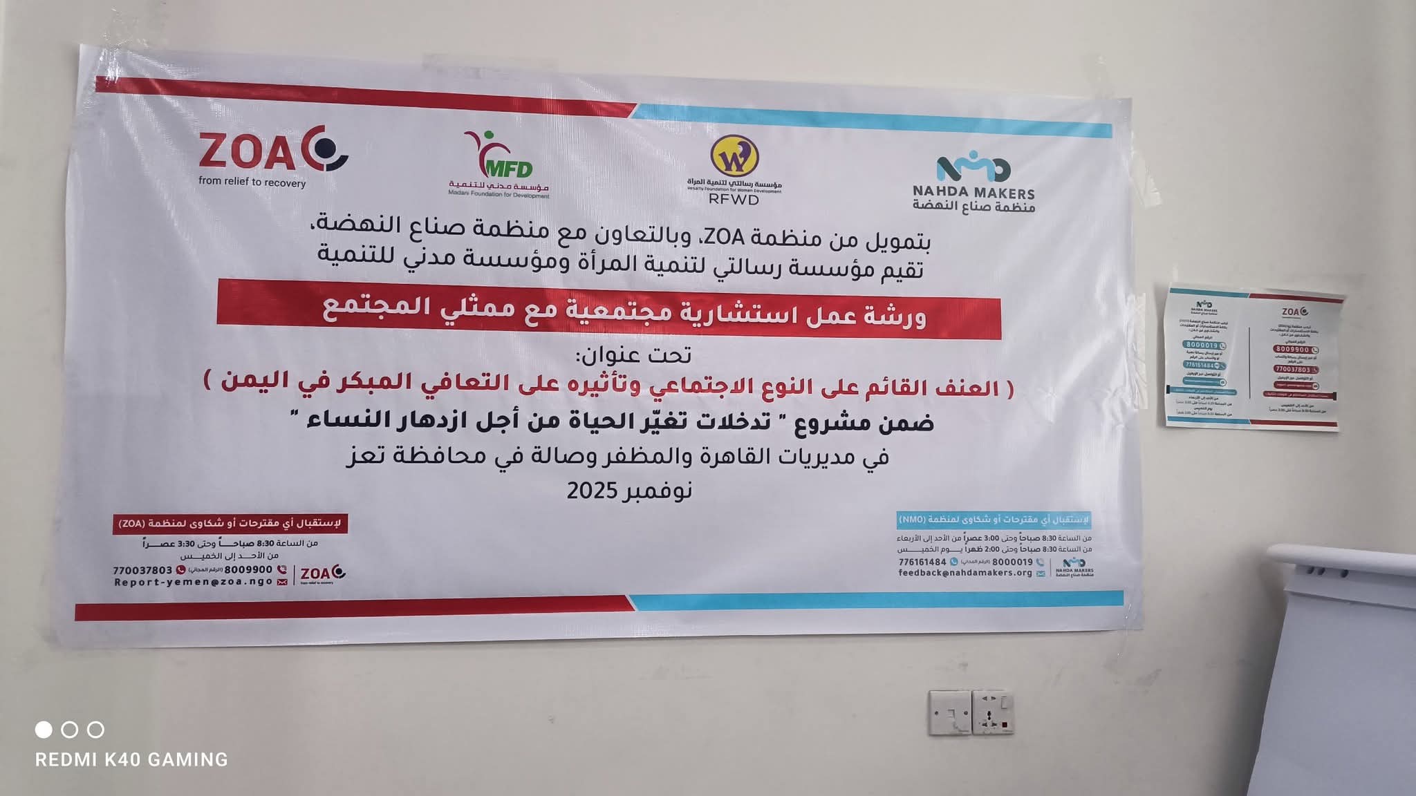 شاركت المؤسسة في الورشة الاستشارية المجتمعية التي أقيمت في محافظة تعز تحت عنوان: