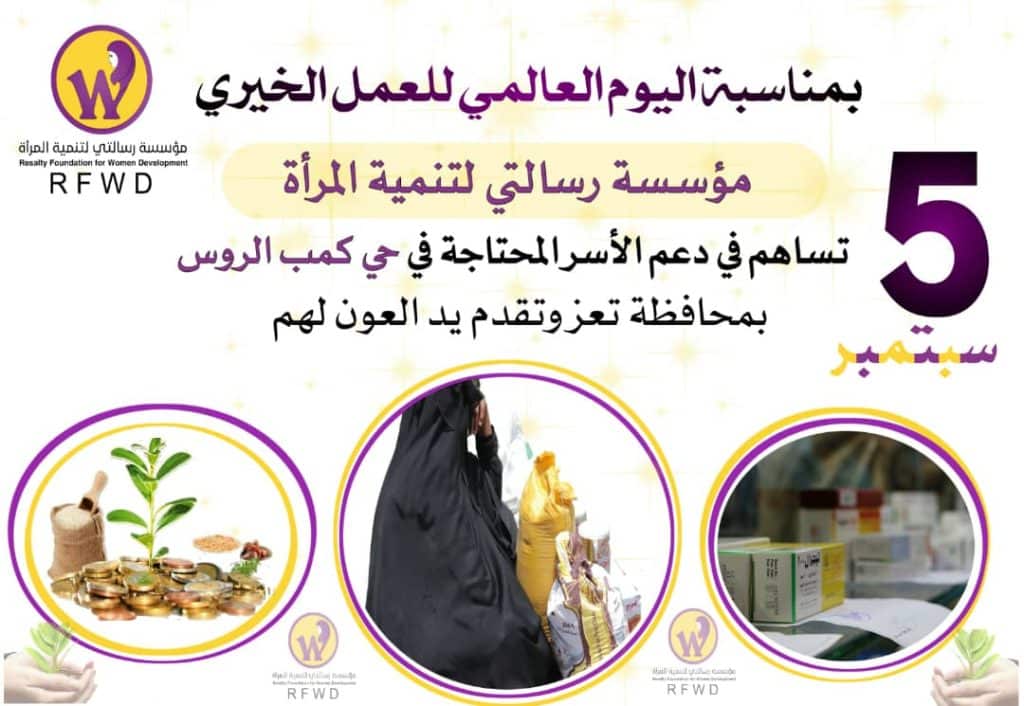 تساهم مؤسسة رسالتي لتنمية المرأة في دعم الأسر المحتاجة في حي كمب الروس بمحافظة تعز وتقدم يد العون لهم.