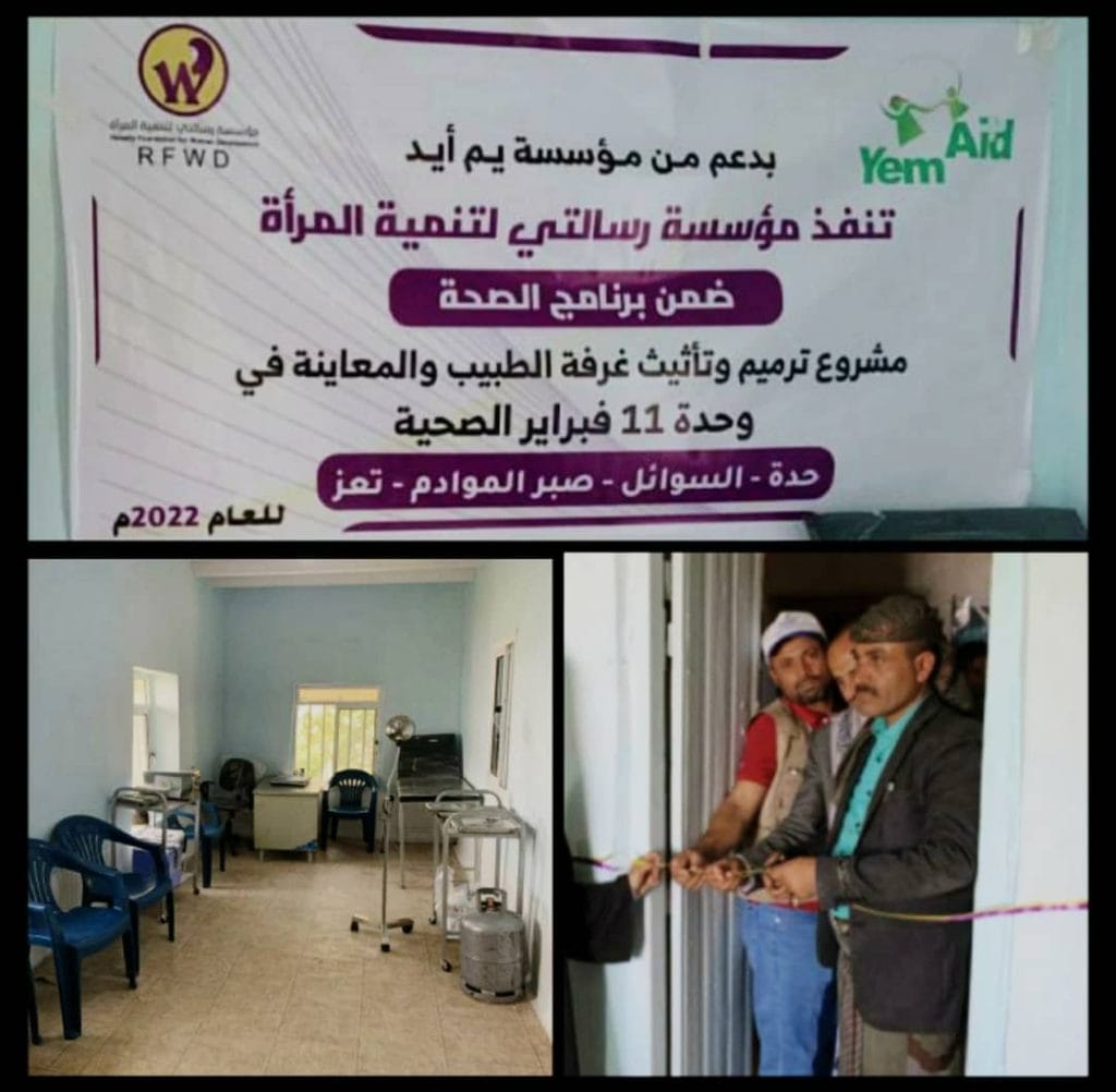 بدعم من مؤسسة Yem Aid رسالتي تُسلم مشروع ترميم وتأثيث مركز 11 فبراير حده الصحي في مديرية صبر الموادم بمحافظة تعز