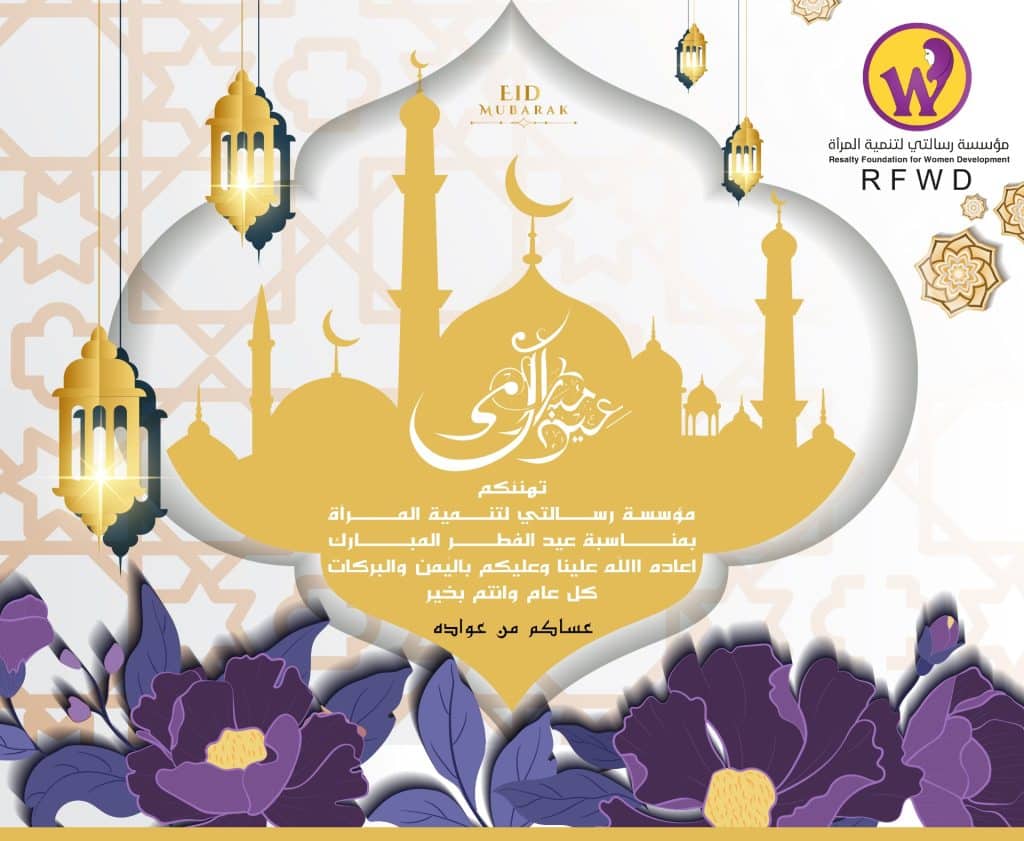 تهنئكم مؤسسة رسالتي لتنمية المرأة بحلول عيد الفطر المبارك، أعاده الله علينا وعليكم باليمن والبركات. وكل عام وأنتم بألف خير